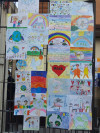 PACE E’ BELLO! Sembrano gridare a gran voce i disegni appesi all’esterno della scuola,